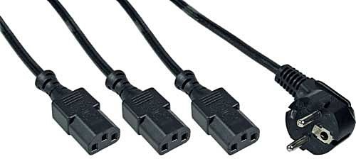 Ermöglicht den Anschluß von 3 Geräten an eine Steckdose, somit können Computer, Monitor und Drucker mit einem einzigen Kabel betrieben werden, eine Steckdosenleiste entfällt. Länge: 1,8m (0,6m + 3x 1,2m)
