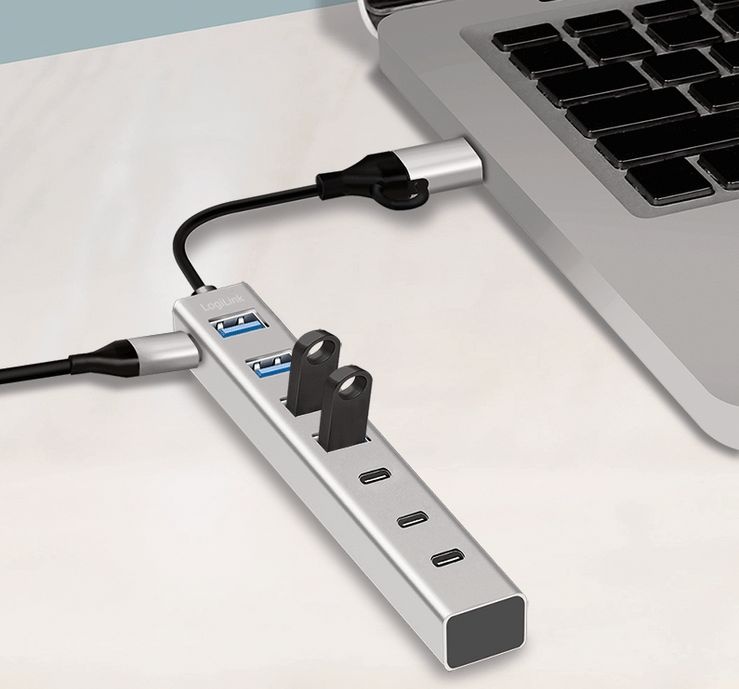 USB-Hub (USB 3.0) Type-C/A an 4x USB-A, 3x USB-C Aluminiumgehäuse