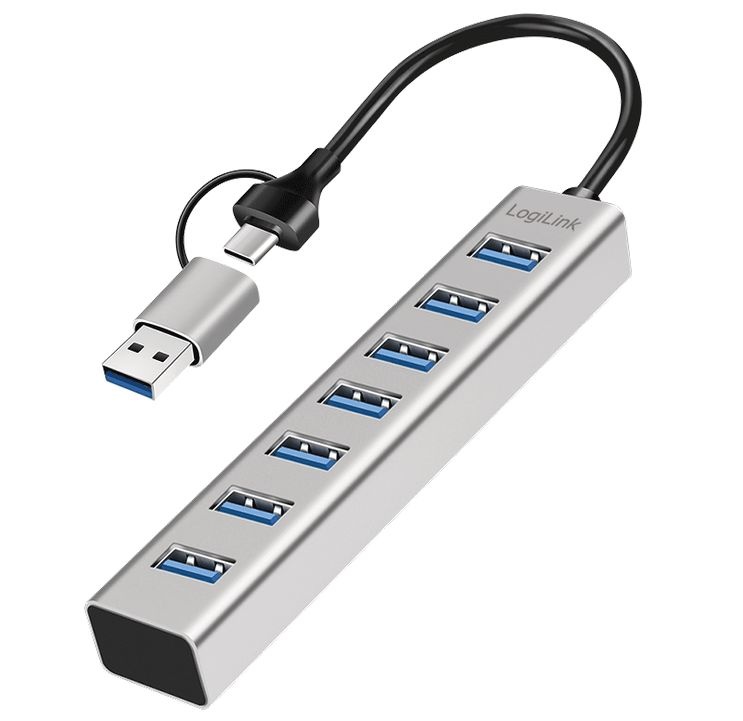 USB-Hub (USB 3.0) Type-C/A an 7x USB-A Aluminiumgehäuse