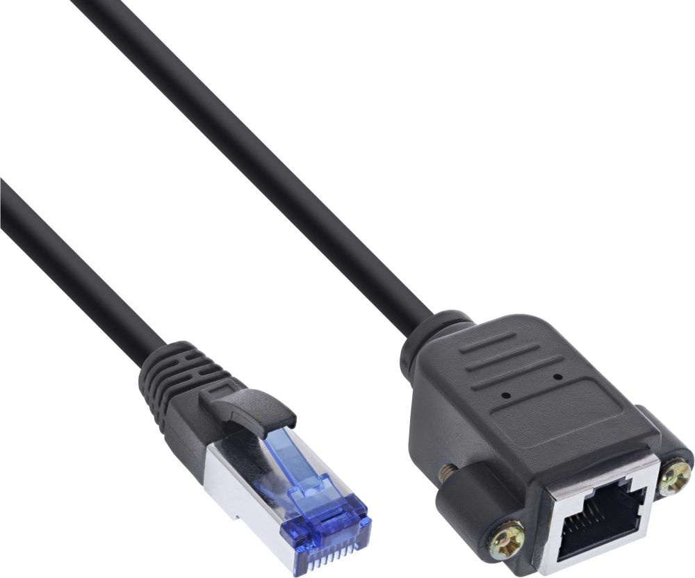 Cat.6A S/FTP Patchkabel-Verlängerung mit einseitiger Einbau-Buchse, zur Montage an Frontplatten